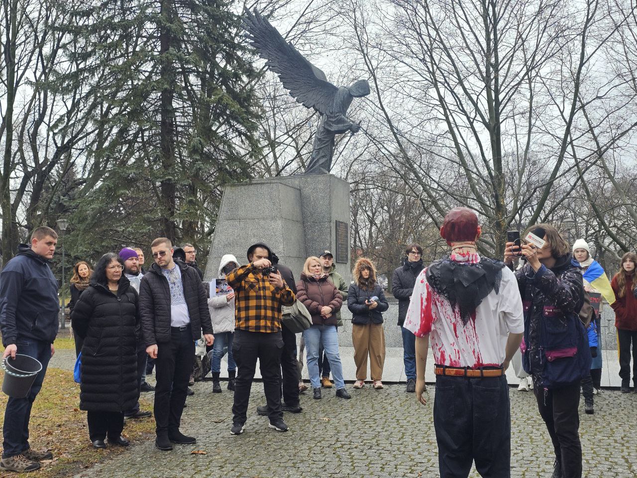 Передбачалася злива, проте мітинг відбувся о 12:00 у неділю, 22 лютого, за місцевим часом, під час російсько-української війни, біля пам’ятника жертвам Катинської трагедії. Це було символічно, адже саме Москва відповідає за розстріли польських офіцерів у Катині навесні 1940 року та за кожну смерть сьогодні в Україні. Ця активістська подія фактично відкриває вроцлавський марафон проукраїнських публічних заходів у 2026 році та закликає до єдності, гідності й справедливості.